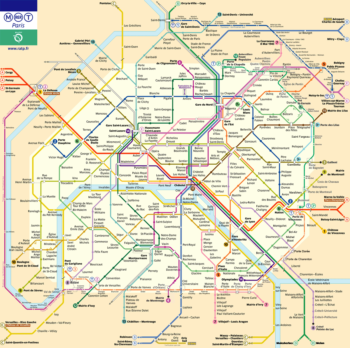 Peta jalur Metro dapat diminta di loket tanpa dipungut bayaran. Kemudian dengan bantuan peta kota Paris yang telah dilengkapi dengan tanda obyek turis beserta nama stasiun Metronya, siaplah sudah kita untuk menelusuri seluruh pelosok kota. Satu hal yang cukup penting, jangan lupa untuk mengingat sortie alias exit alias pintu keluar stasiun. Karena bila kita tidak memperhatikan hal tersebut, kita akan kebingungan mencari arah padahal kita telah berada di lokasi yang benar tetapi bisa jadi di sisi yang berlawanan.