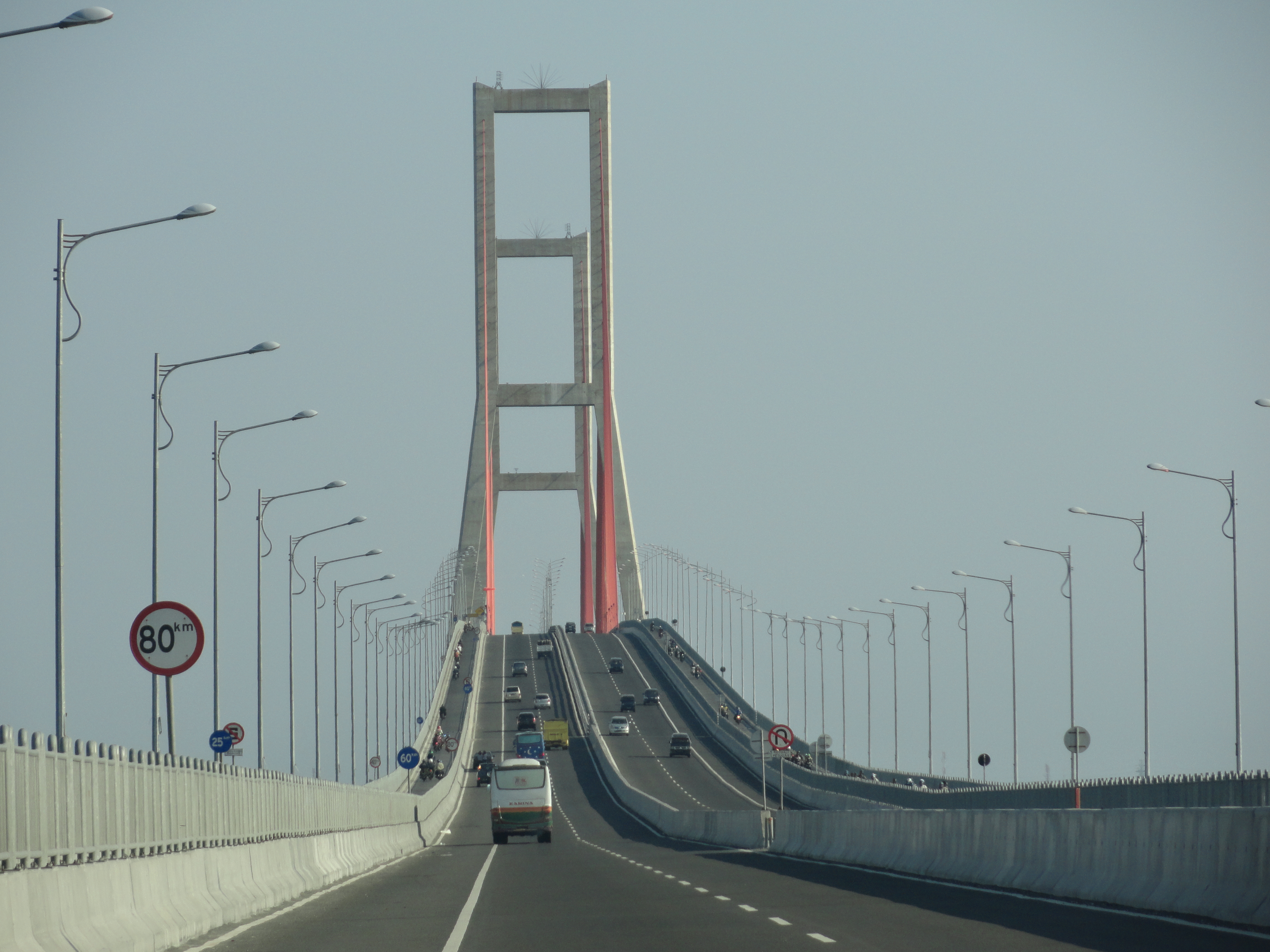 Setelah melaksanakan shalat zuhur dan puas menikmati masjid legendaris ini kamipun melanjutkan perjalanan. Yaitu menyeberangi jembatan Suramadu menuju pulau Madura. Tidak ada yang istimewa di tempat ini kecuali jembatan yang menjadi penghubung antara 2 pulau ini memiliki jalur khusus sepeda motor. Sesuatu yang benar-benar jarang, saya rasa.