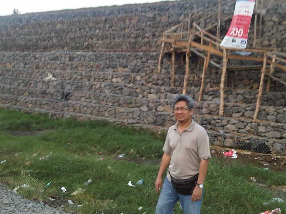 Mulanya saya agak ragu naik. Karena sekelompok orang tampak berdiri di mulut tangga, menghalangi jalanan. Ternyata mereka adalah ‘penjaga’ lautan lumpur, yang secara ilegal, tentu saja, memungut bayaran tiap orang yang ingin melihat lokasi bencana. Tak urung tadinya mengomel juga mulut ini. « Dasar orang Indonesia, bisa aja cari celah untuk dapetin uang. Ini sih judulnya berdiri di atas penderitaan orang lain ».