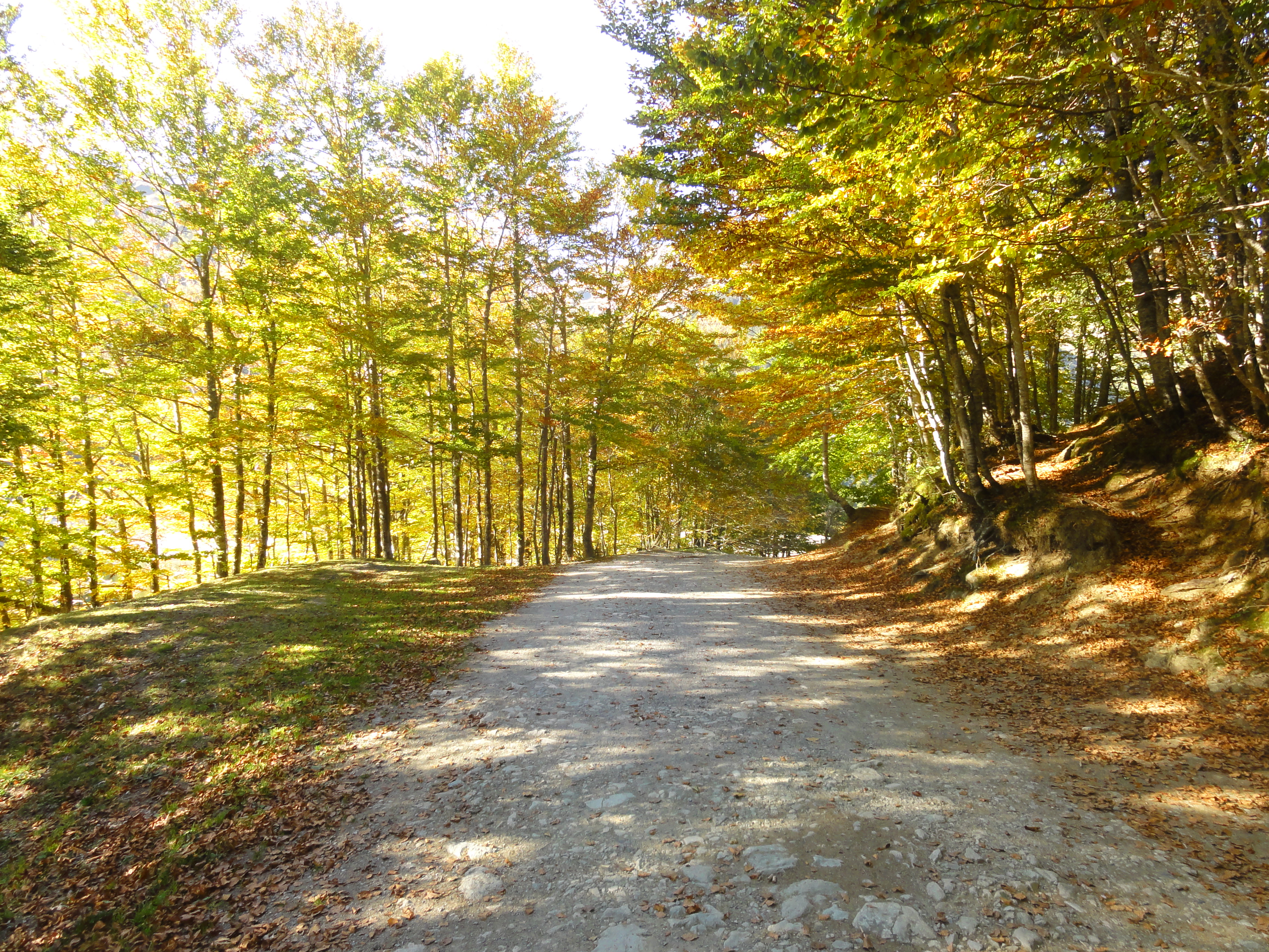 Udara cukup bersahabat, tidak terlalu dingin untuk ukuran musim gugur di bulan Oktober ini. Sementara sinar matahari yang cerah menerangi alam pegunungan yang tampak bersih dari segala kotoran itu. Tak secuilpun sampah tampak di antara rontokan daun-daun kering yang berguguran. Warna-warni dedaunan di pepohonan: hijau, kuning, merah, orange sungguh menakjubkan mata dan hati. Belum lagi gemericik suara air sungai, burung-burung yang bernyanyi serta suara lonceng kalung sapi di kejauhan .. Masya Allah .. alangkah merdunya …