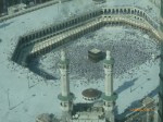Subhanallah, bersujud saya di depan jendela besar yang terlihat kotor sekali karena memang pasti sulit dibersihkan. Merinding hati ini menyaksikan bait Allah dari ketinggian hotel. Secara fisik, dibanding puluhan hotel dan bangunan yang mengelilinginya, ‘rumah’ berbentuk kubus ini memang tidak ada artinya.