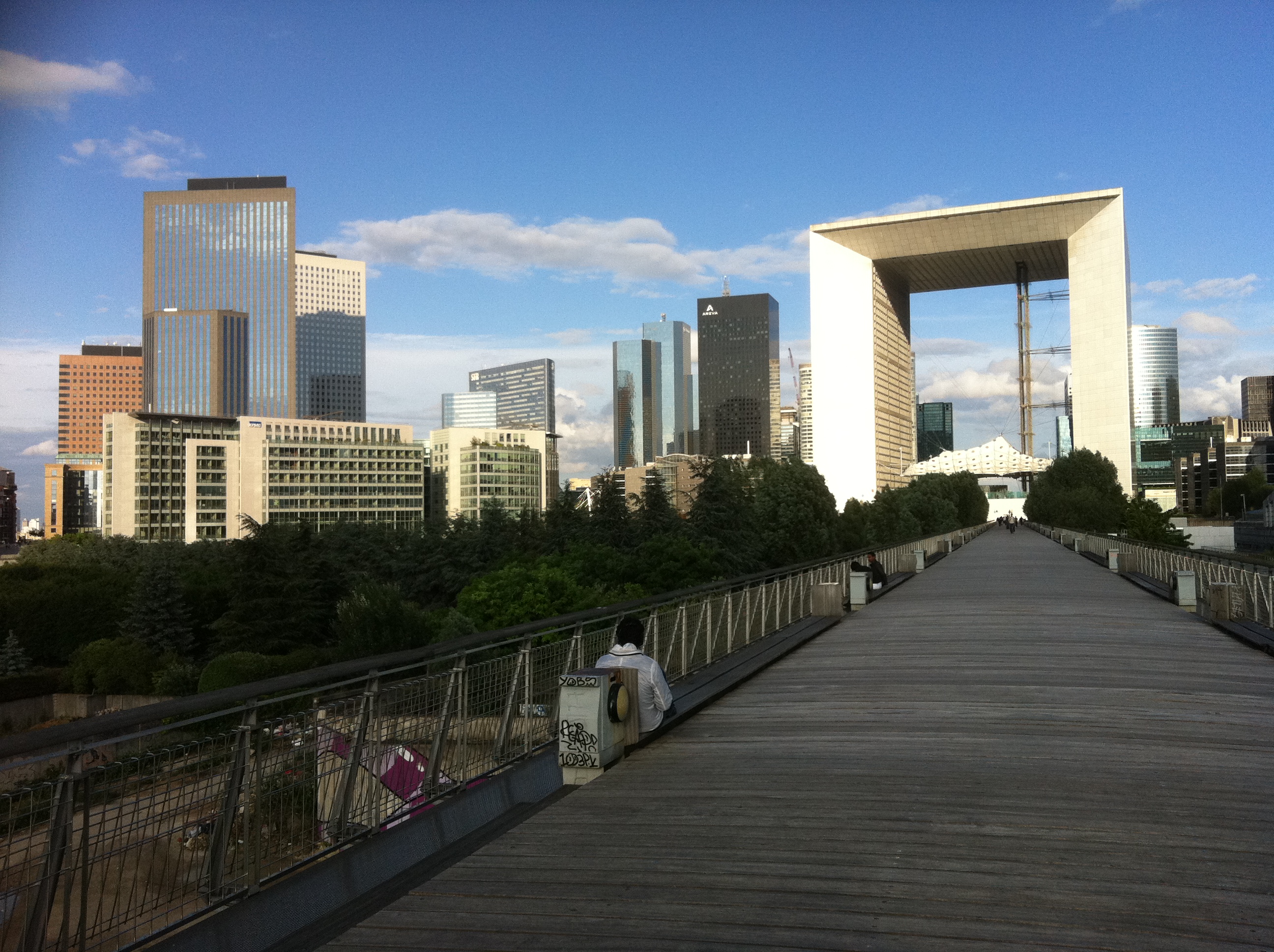 Grand Arch bersama dengan Arch de Triomphe dan Arch de Triomphe du Carousel yang ukurannya lebih kecil lagi dari Arch de Triomphe, membentuk satu garis lurus yang dikenal dengan nama Axe Historique, garis lurus bersejarah. Bulevard terkenal Champs Elysees dan Place de la Concorde yang fenomenal itu terletak diantara Arch de Triomphe dan Arch de Triomphe du Carousel. Arch de Triomphe du Carousel sendiri berada di ujung akhir Jardin de Tuleries, persis di depan Pyramida kaca raksasa yang merupakan pintu gerbang Musee du Louvre .