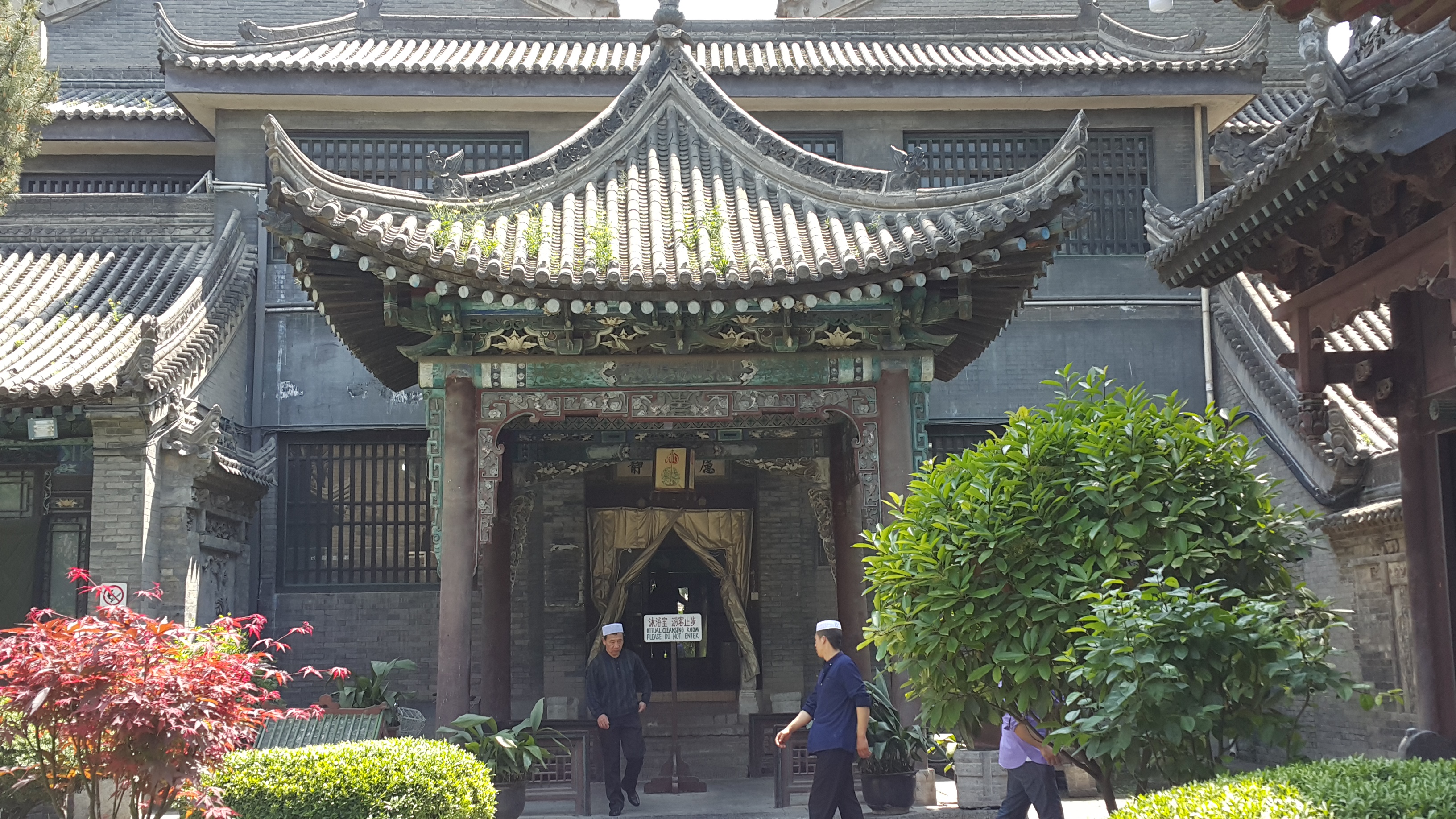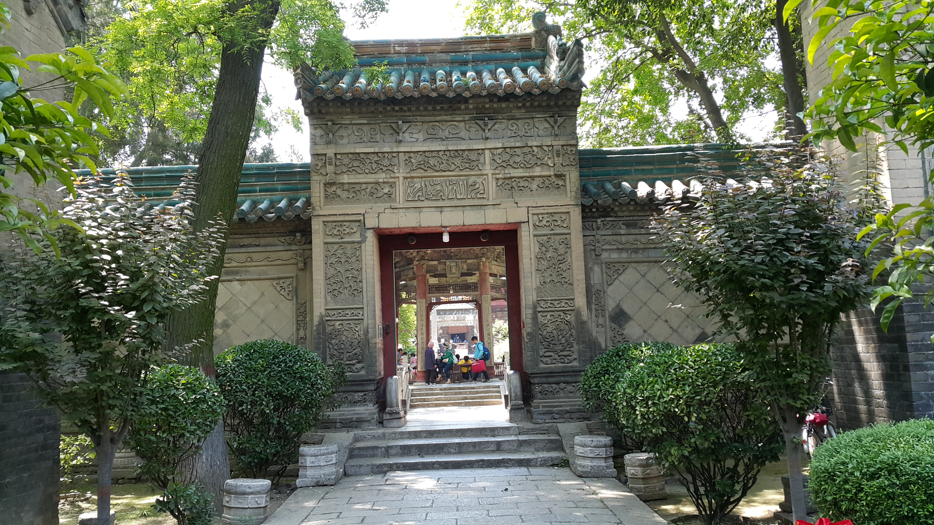 Masya Allah, ternyata masjid Agung Xian ini menempati area yang cukup luas, menurut info yang saya dapat, sekitar 12.000 – 13.000 m2. Sementara luas masjid utama yang khusus digunakan untuk shalat sekitar 6.000 m2. Bangunan mirip rumah ibadah Cina, klenteng, ini terletak di ujung lokasi. Komplek masjid ini mempunyai beberapa pendopo dan gapura ber-arsitektur khas Cina, dengan hiasan kaligrafi di sana-sini. Sangat menarik dan unik.