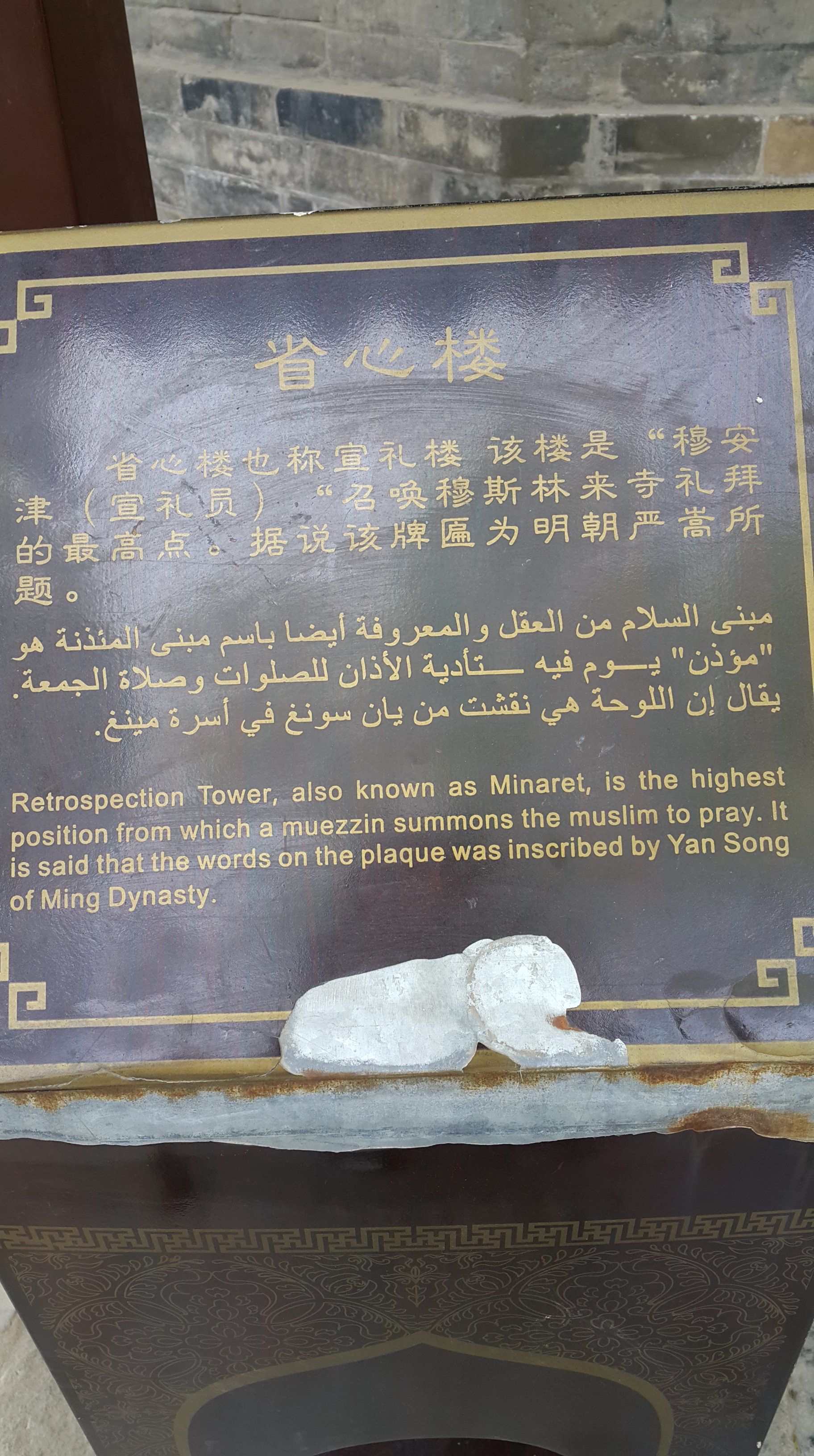 Saya sempat ngobrol dengan ibu muda yang tadi juga berada di masjid bagian perempuan. Ia bersama putri kecilnya juga sedang menunggu suaminya shalat Jumat. Perempuan muda asli Cina ini rupanya seorang turis lokal. Masjid Agung Xi’an memang bukan hanya tujuan wisata luar negri, tapi juga dalam negri.