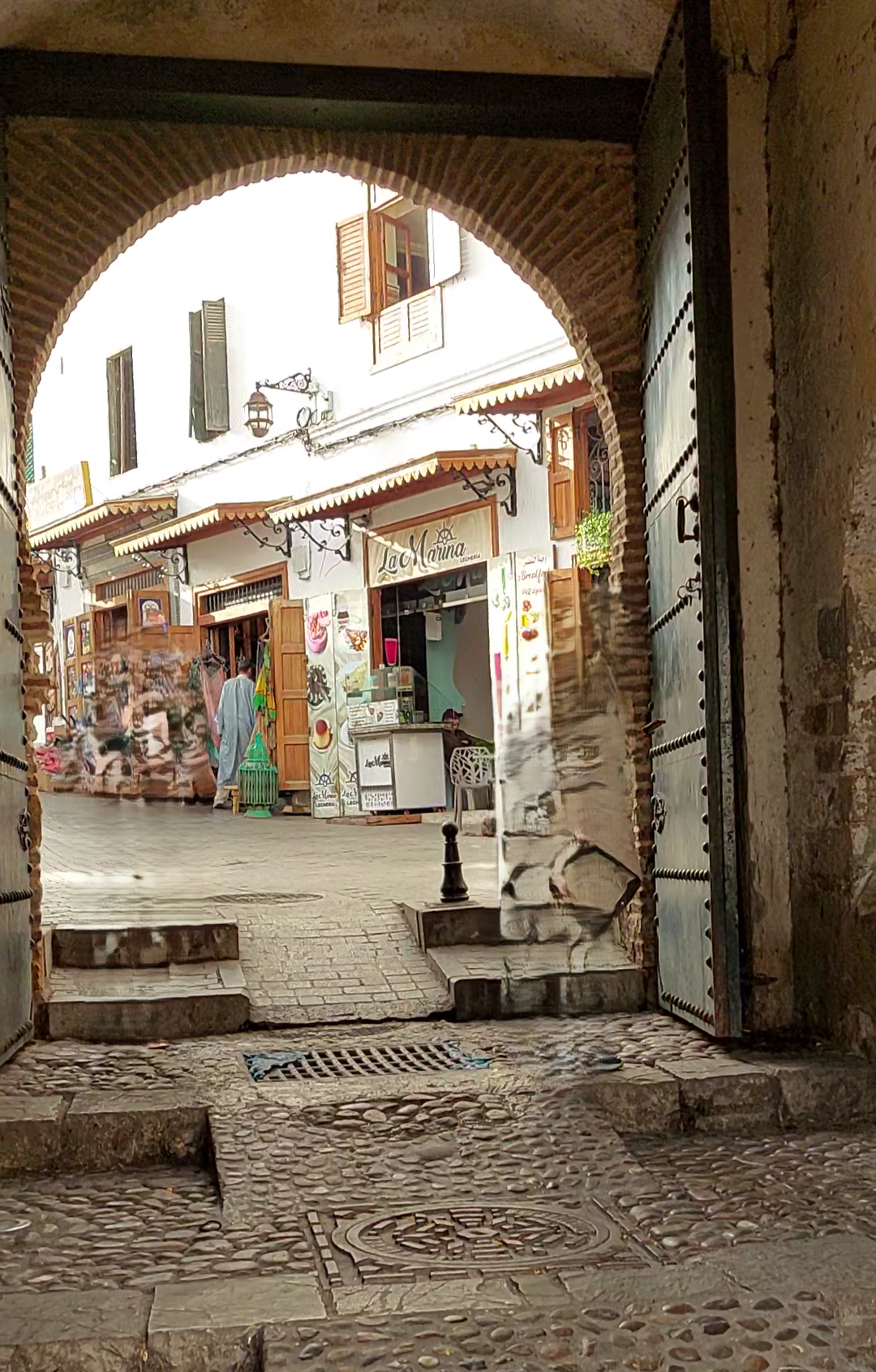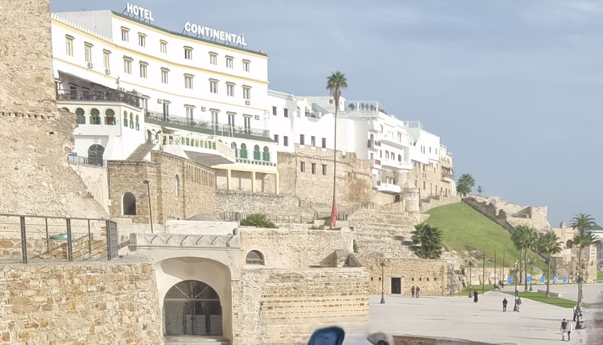 Old media Tangier dikelilingi tembok besar dimana berdiri di dalamnya kasbah/benteng dengan gapura-gapuranya, masjid agung, rumah penduduk dan cafe dengan pintu-pintunya yang unik, dan tak ketinggalan souk alias pasar yang menjual berbagai kebutuhan. Sungguh menarik menelusuri jalan-jalan kecil berliku menanjak bagai labirin di dalam kota tua ini. Tak lama kamipun tiba di plaza Kasbah yang terletak di tempat tertinggi Tangier. Dari tempat ini kita dapat menikmati pemandangan indah lautan Atlantik yang biru nan luas dan pelabuhan Tangier dengan kapal-kapalnya.