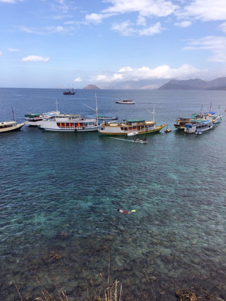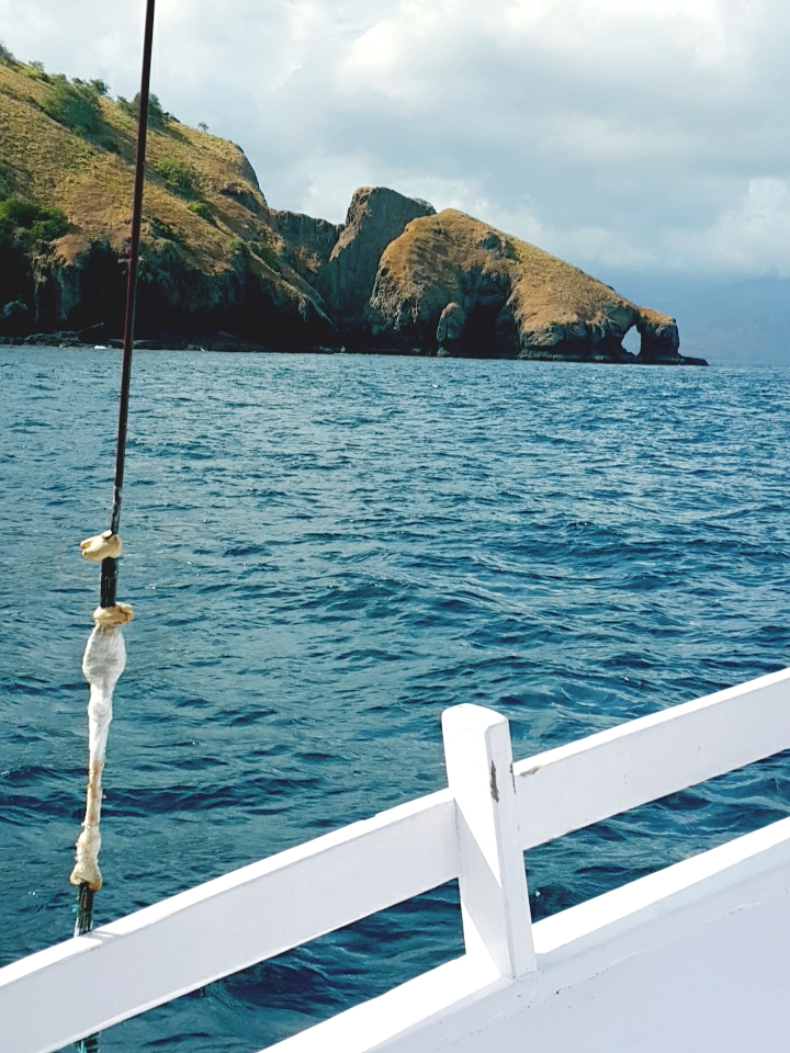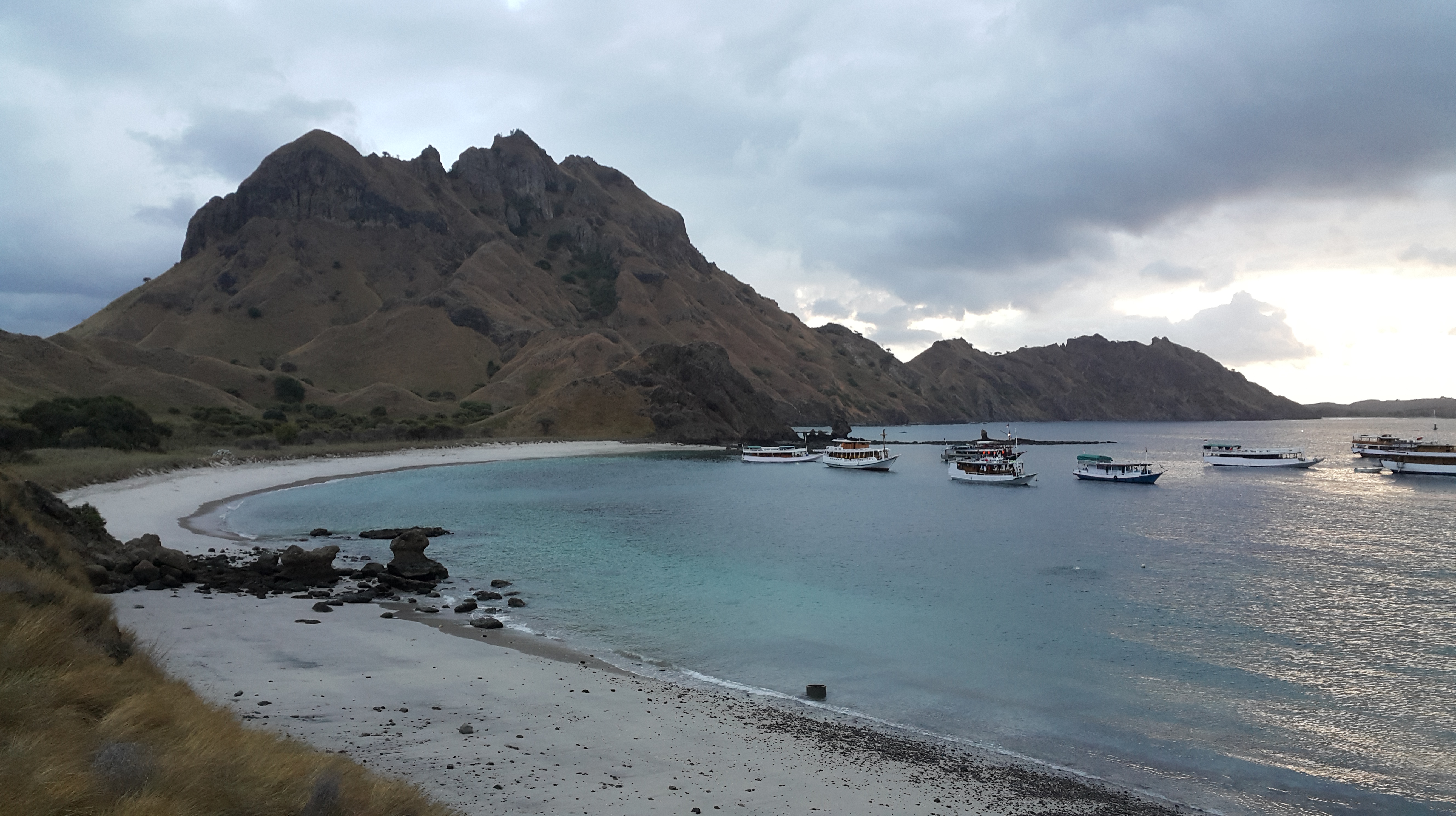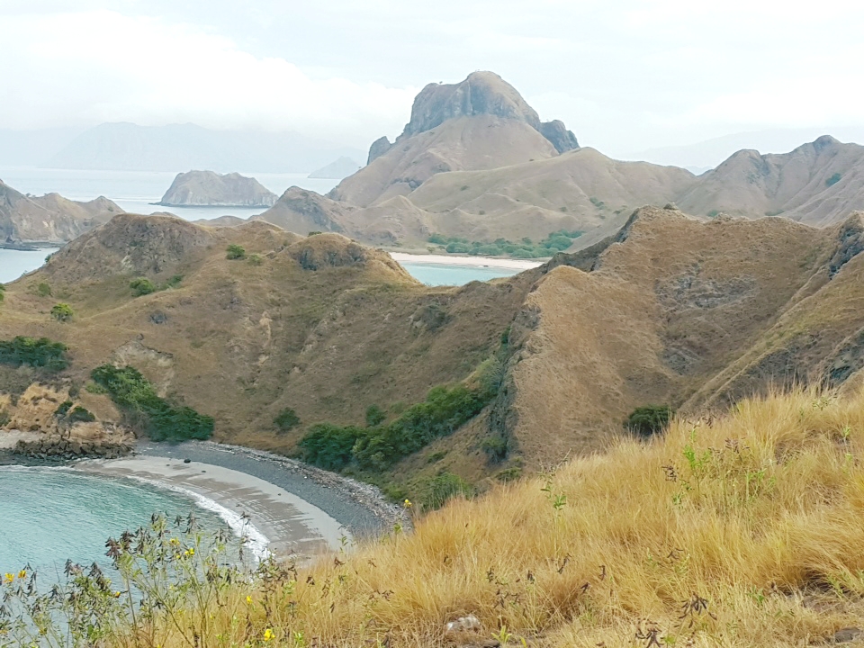 Sementara saya dan suami sebentar-sebentar berhenti, selain untuk mengagumi keindahannya, juga untuk mengatur nafas dan menjaga kaki supaya tidak terlalu lelah mendaki tangga yang cukup panjang dan tinggi itu … maklum faktor U … 🙂 … Akhirnya kamipun tiba di atas bukit pulau Padar dengan mata terbelalak … Masya Allah, sungguh indah ciptaan-Mu … Rasanya inilah pemandangan alam tercantik yang pernah kami saksikan selama ini.